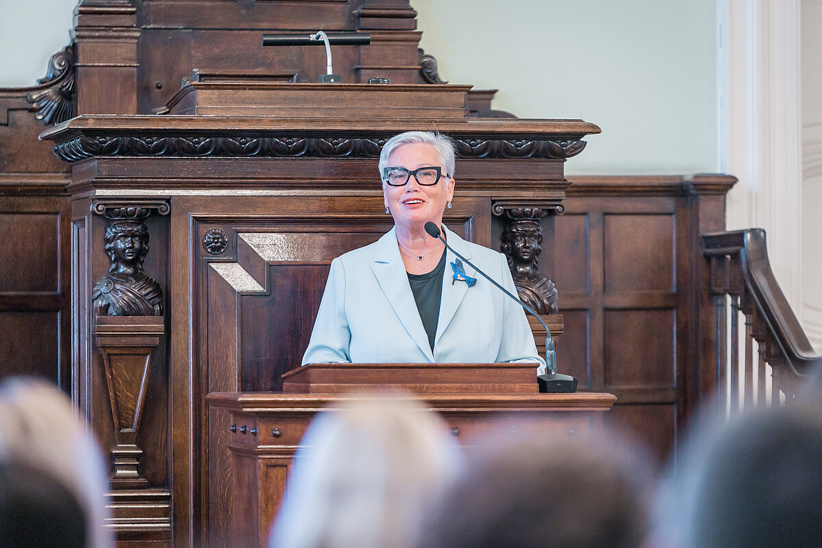 Savukārt LU prof. Inna Šteinbuka savā runā uzsvēra, ka Latvijas politiķu dienaskārtībā ir neordināru risinājumu meklēšana gandrīz visās valsts attīstības jomās: demogrāfija un cilvēkkapitāls, drošība un demokrātija, inovācijas, digitalizācija un mākslīgais intelekts, klimata neitralitāte, publiskās pārvaldes efektivitāte.
