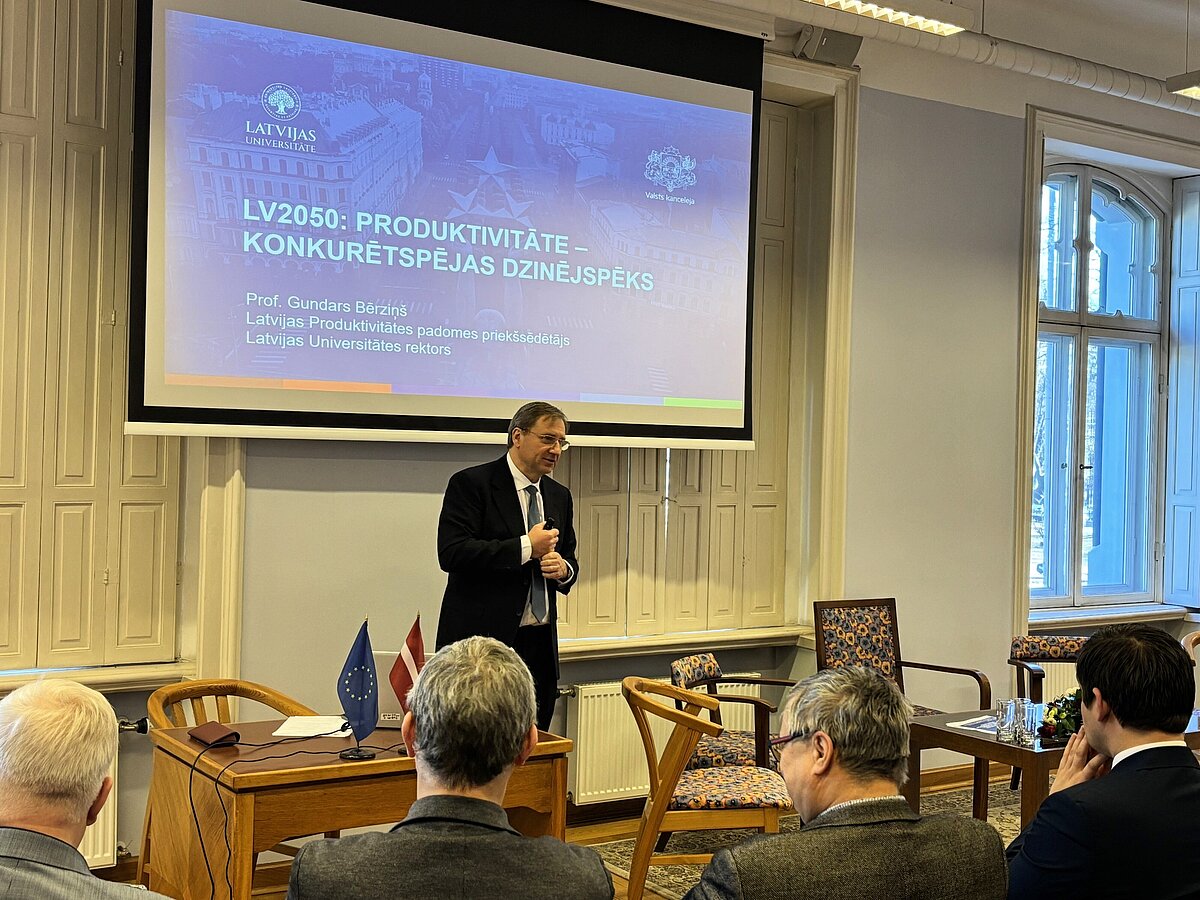 - Prof. Gundara Bērziņa prezentācija “Latvijas stratēģiskais ietvars LV2050: produktivitāte – konkurētspējas dzinējs”;